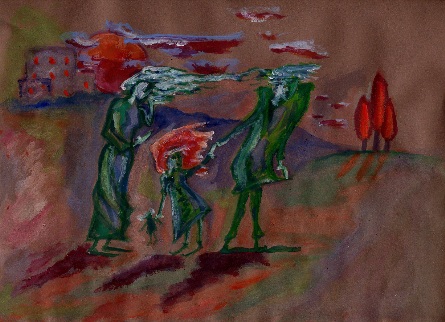 Shadows 10'x8' watercolor painting on plain paper, framed